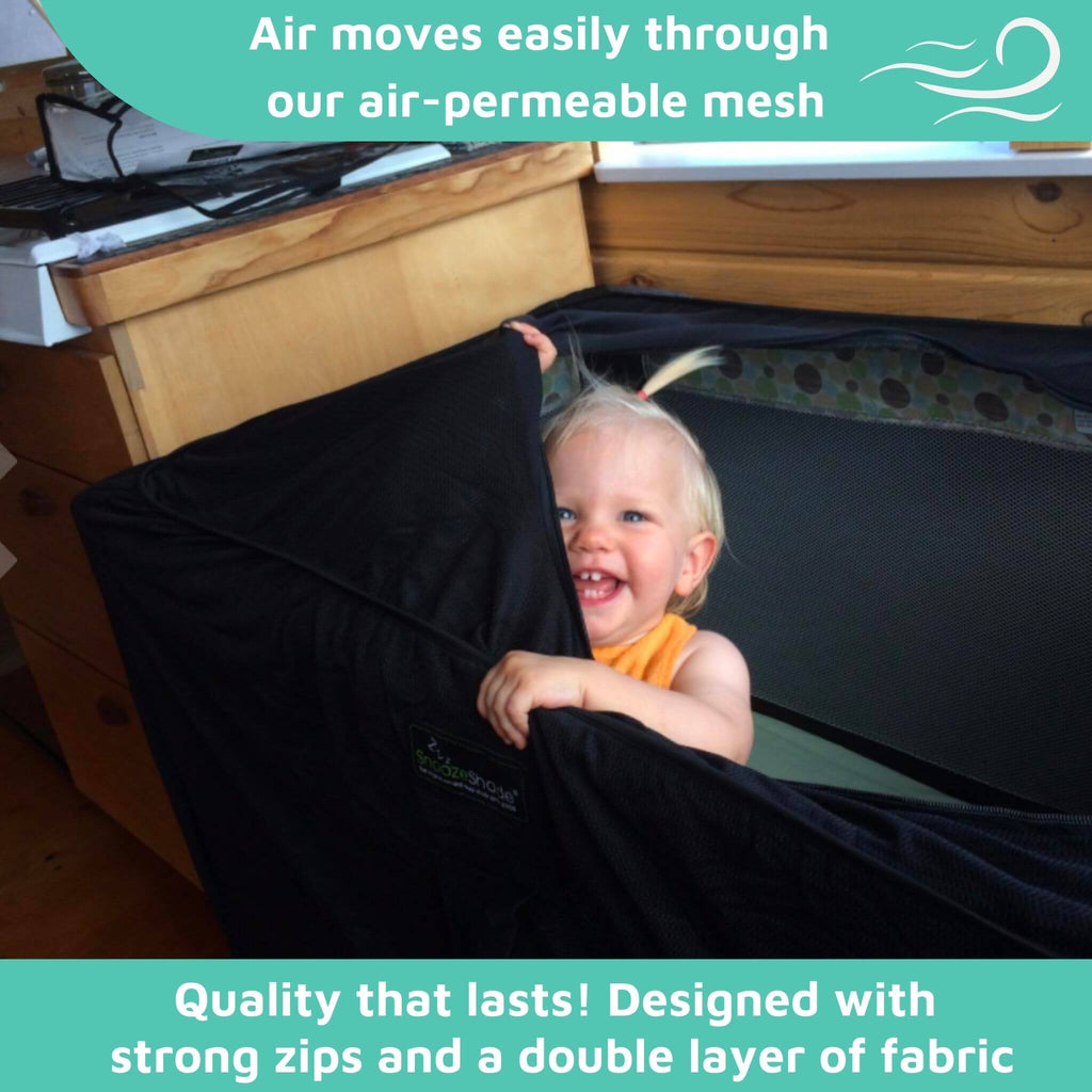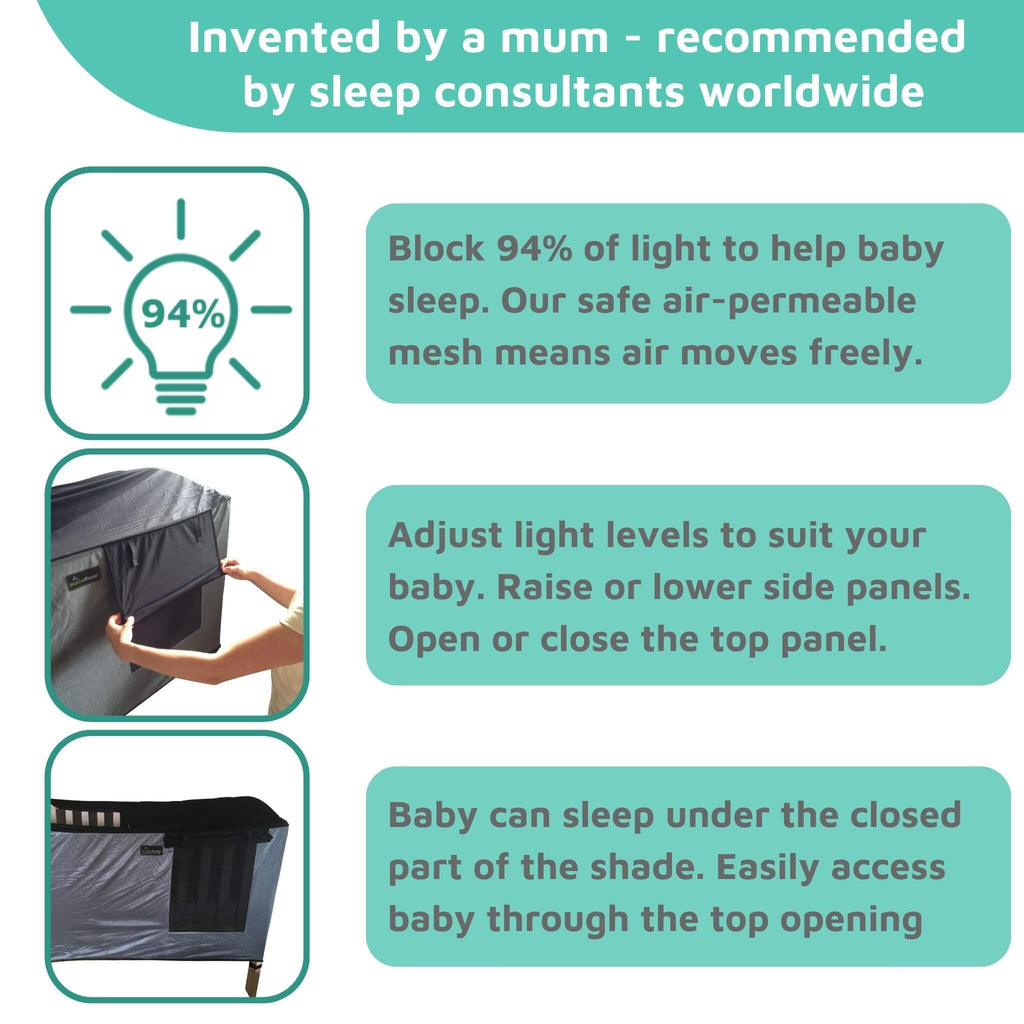 SnoozeShade for Cots | Air-permeable cot canopy and portable blackout blind for cots