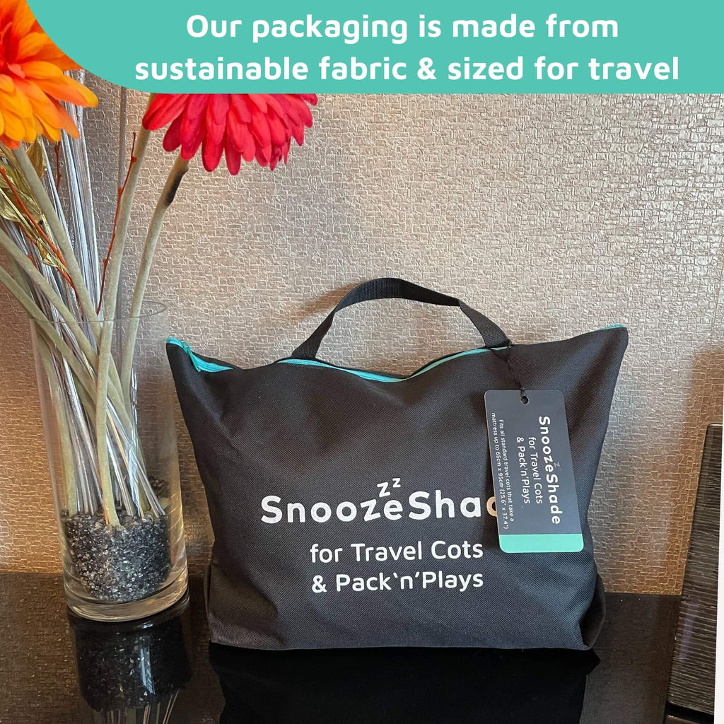 Is SnoozeShade for Cots easily portable? Yes! It packs down into a handy storage bag (free with every order) and is super lightweight, with no complicated attachments to carry with you. It weighs just 1.1kg and is small enough to pop in your suitcase without taking up much room at all.