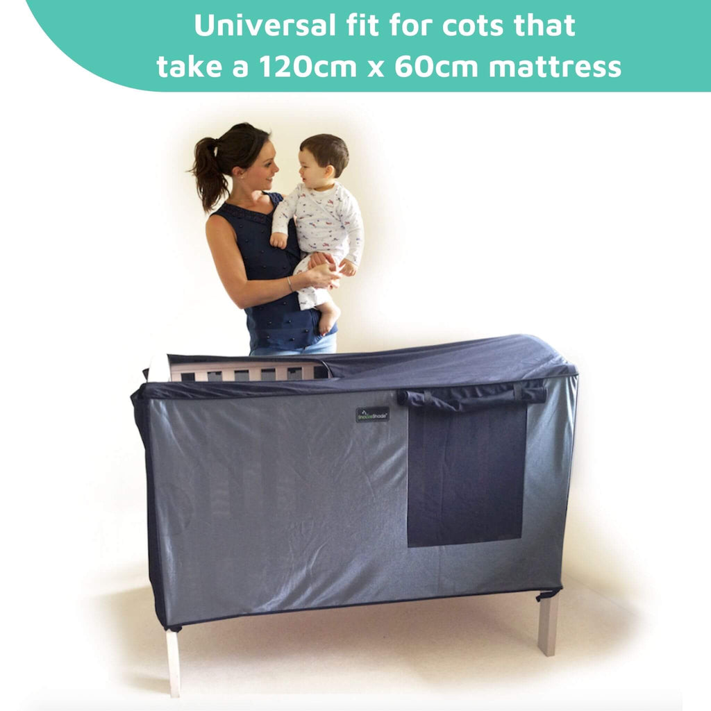 SnoozeShade for Cot Beds | Air-permeable cot bed canopy and portable blackout blind for cot beds